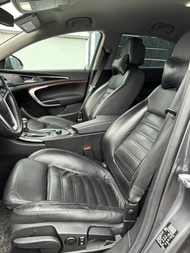Opel Insignia 2009r, diesel 2.0tdci, 130km sedan, kolor perła, skrzynia automatyczna zmienia biegi płynnie, światła xenon zmienione żarniki na led ( bielsze światło) wewnątrz założone żarówki led, czujniki parkowania przód i tył, przyciemnione szyby, skórzana tapicerka, elektryczne fotele, 8 airbag, elektryczne szyby otwierane i zamykane z pilota, centralny zamek, elektryczne lusterka, fotochromatyczne lusterko, climatronic, wspomaganie kierownicy, multifunkcyjna kierownica, tryb sport, usb, Bluetooth, nawigacja, automatyczne światła długie, wewnątrz zmienione oświetlenie na led, zmienione nagłośnienie na bose, bagażnik otwierany z pilota, w listopadzie zostały zakupione i założone opony letnie na Alu felgi 20”które mają przebieg 3km z wulkanizacji do garażu i zostały założone alufelgi 18” z oponami zimowymi które jeżdżą pierwszy sezon,Olej i filtry wymienione, 21.01.2026 został wymieniony cały układ egr 1,200zl + mechanik = 1,900zl, w dniu 06.03.2026 zostało wymienione przednie zawieszenie 1449zl + ustawienie zbieżności i mechanik= 2,350 zł, wnętrze zadbane, dwa kluczyki, auto użytkowane przez kobietę na dojazdy do pracy więc jest 100% sprawne zero wkładu finansowego jedynie tankować i jeździć, przegląd do 29.01.2027r
