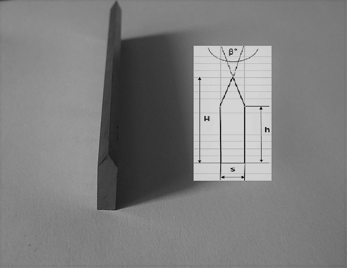 P 40142/1 ….. Dł.=100 mm, szer.= 5 mm, wys.= 20 mm, wys.= 15 mm, β= 53°, więcej szt.